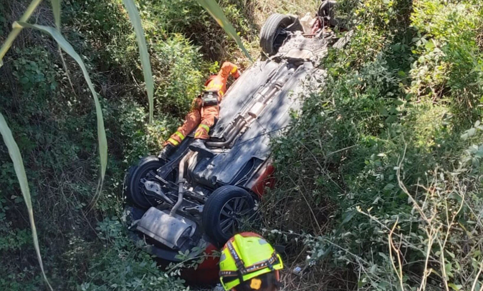 2 vehicles implicats. 1 d’ells ha bolcat per un terraplé, amb un atrapat que ha sigut excarcerat pels bombers. Extret immobilitzat amb taula fins a ambulància. pic.twitter.com/jwxIfEa11j
