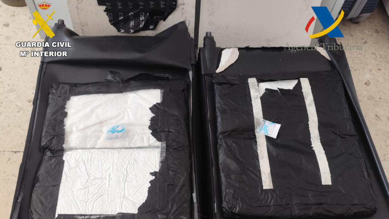 Finalmente, se realizó un punzonado en la base de ambos equipajes. Con este procedimiento comenzó a salir un polvo blanco que, tras ser sometido a un test, arrojó un resultado positivo en cocaína. El peso total de la sustancia asciende a 6.255 gramos.