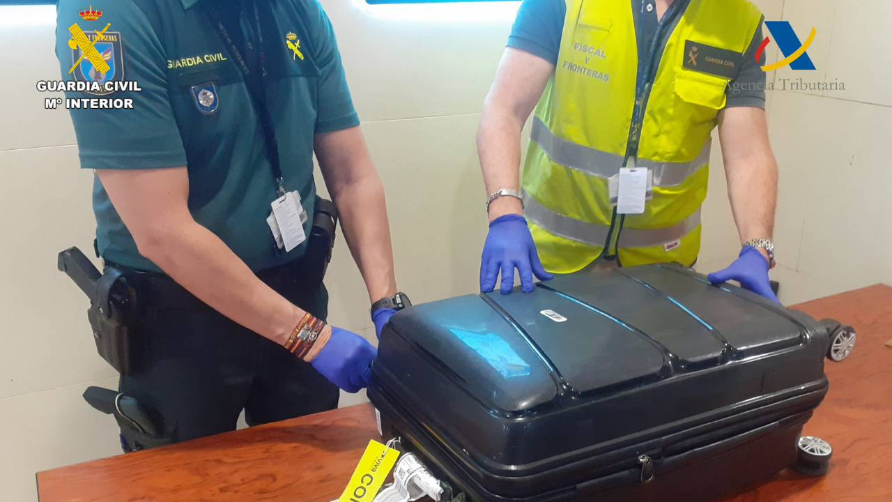 La Guardia Civil y la Dependencia Regional de Aduanas de la Agencia Tributaria en Valencia han detenido en el aeropuerto de Manises a dos personas procedentes de un vuelo de Suiza con origen en Brasil. Los apresados trataban de introducir 6.255 gramos de cocaína en su equipaje.