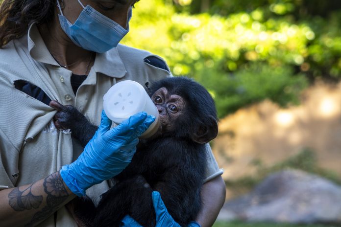 Desde su nacimiento, y ante las dificultades de su madre para atenderlo, se activó un protocolo de atención directa que mantiene a Ekon en contacto constante con su entorno natural, es decir, con los sonidos, olores y presencia de los demás chimpancés. El equipo de expertos en etología de primates ha trabajado sin descanso para ofrecerle cuidados continuos sin perder nunca su identidad animal.
