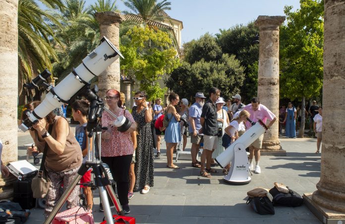 Más de 200 personas observan el Sol como preámbulo al eclipse de 2026. El Museu Valencià de la Il·lustració i de la Modernitat (MuVIM) ha reunido esta mañana a más de 200 personas en una observación solar como preámbulo al eclipse total del 12 de agosto de 2026, un fenómeno que no se produce en la península Ibérica desde hace más de un siglo y que se verá especialmente bien desde algunas zonas del interior de la provincia de Valencia. Es así porque se producen las condiciones necesarias como son, entre otras, la baja contaminación lumínica.