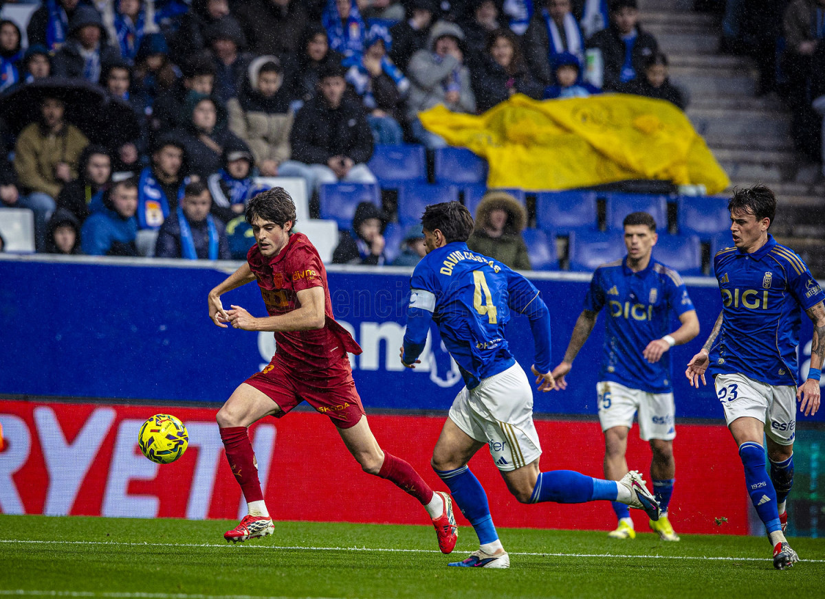 No obstante, cinco minutos más tarde, David Costas anotó el primero para el Real Oviedo. El central vigués aprovechó una jugada de Thiago para rematar un pase atrás en el área y ‘fusilar’ a Dimitrievski (1-0).