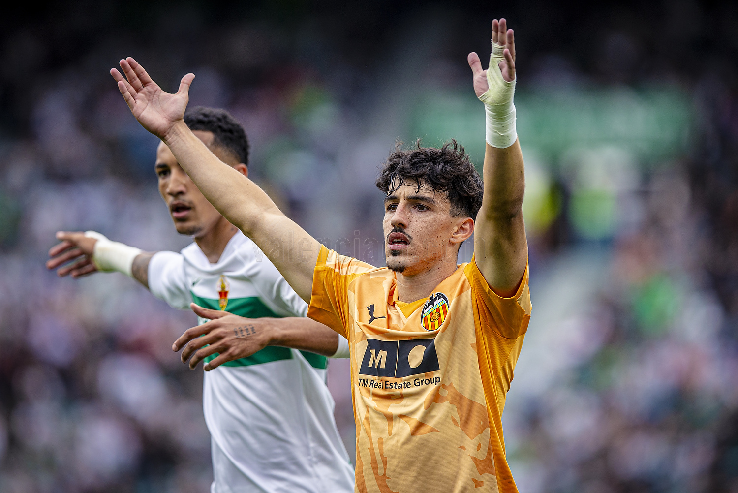 La primera llegada en esta segunda mitad fue para el conjunto valencianista con una incursión de Gayà por el flanco izquierdo que centró, pero despejó la defensa ilicitana. Seguidamente, el Valencia CF volvió a avisar tras un gran centro de Rioja que remató Sadiq, pero que no acertó en su testarazo.