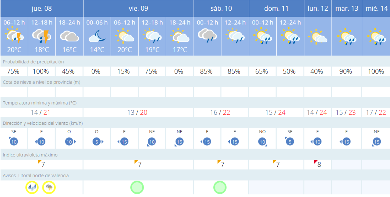 Previsión del tiempo en Valencia durante la semana. / AEMET