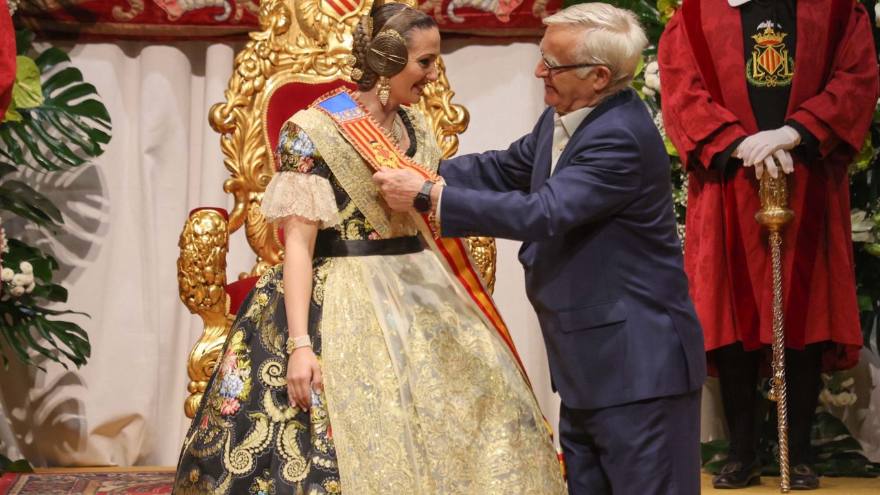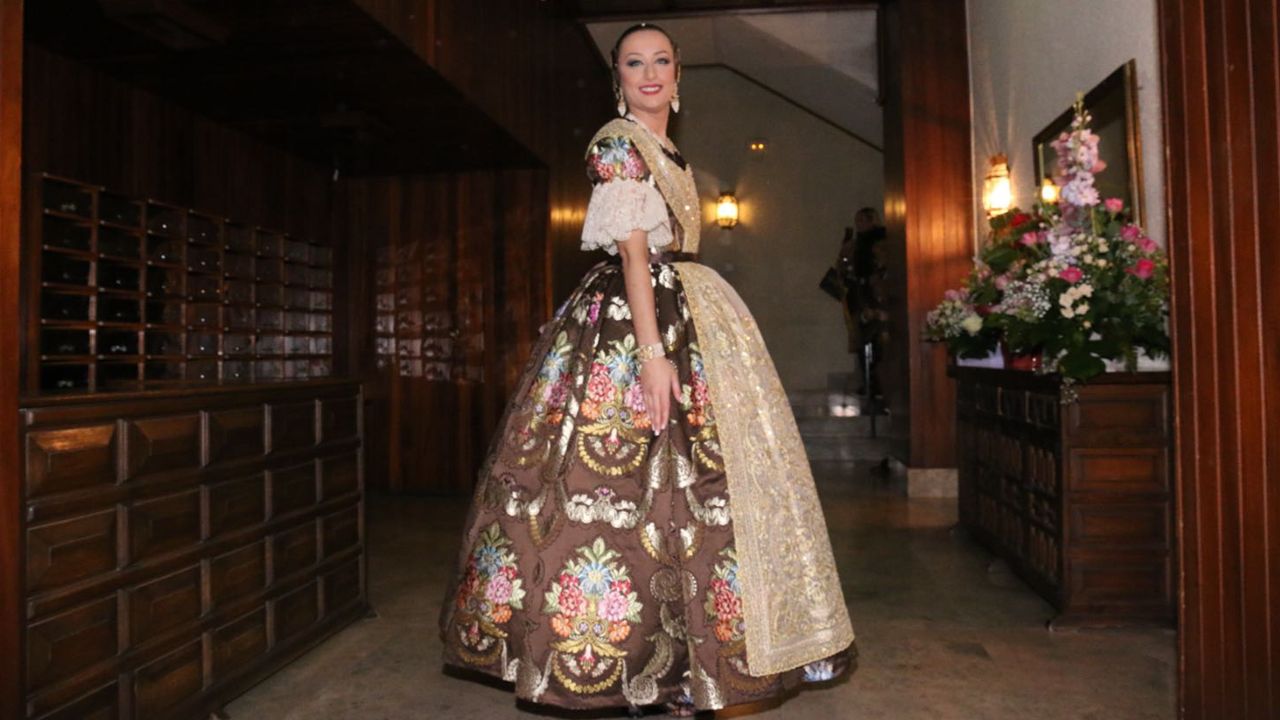 El traje de la Exaltación es una de las señas de identidad más reconocibles de cada Fallera Mayor. Desde el año 2001, la Junta Central Fallera estableció el espolín oficial ‘Fallera Mayor de València’, un exclusivo cartonaje que solo puede vestir quien ostenta el máximo cargo representativo de la fiesta.