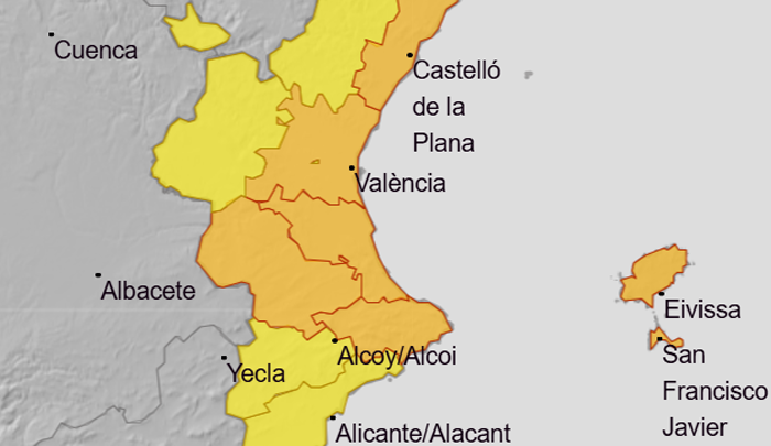 El viento de levante persistente y con largo recorrido por el Mediterráneo en capas bajas, lo que da lugar a que el aire se vaya cargando de humedad e inestabilizándose. Este sábado tendremos cielo muy nuboso o cubierto con chubascos y tormentas fuertes o muy fuertes y persistentes, especialmente en el litoral, el prelitoral y el interior sur. Temperaturas mínimas sin cambios; máximas en ligero descenso en el litoral y sin cambios en el resto. Viento del nordeste, moderado en el litoral y flojo con intervalos de moderado en el resto.