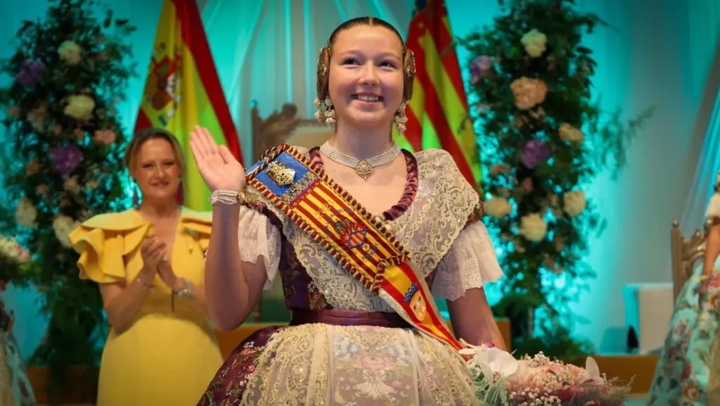 Sara, con su traje de seda de Vives y Marí modelo Gandhi en color Tinto, encarnó la dulzura y el orgullo de representar a los niños y niñas falleros. Junto a su Corte de Honor, brilló en una ceremonia que combinó humor, ternura y emoción.