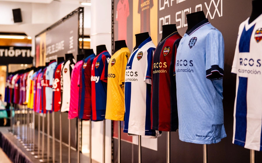 Desde los ascensos a primera división hasta el paso por competiciones europeas, la exhibición reconstruye parte del legado reciente del Levante UD. Entre las piezas más destacadas se encuentra la camiseta conmemorativa del centenario con los nombres de los abonados de la temporada 2009-2010. También se exponen modelos alternativos, camisetas de portero y uniformes diseñados con fines sociales, como el que apoyó a los afectados por la DANA. Además, se presentan por primera vez al público las equipaciones oficiales para la temporada 2024-2025 del equipo masculino y femenino.