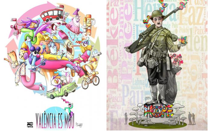 Así serán las fallas municipales: Charles Chaplin y una Valencia en constante evolución. El tándem formado por Alejandro Santaeulalia y Vicente Llácer plantarán la falla grande en la Plaza del Ayuntamiento. Nuevamente con un diseño de Josete Santaeulalia.