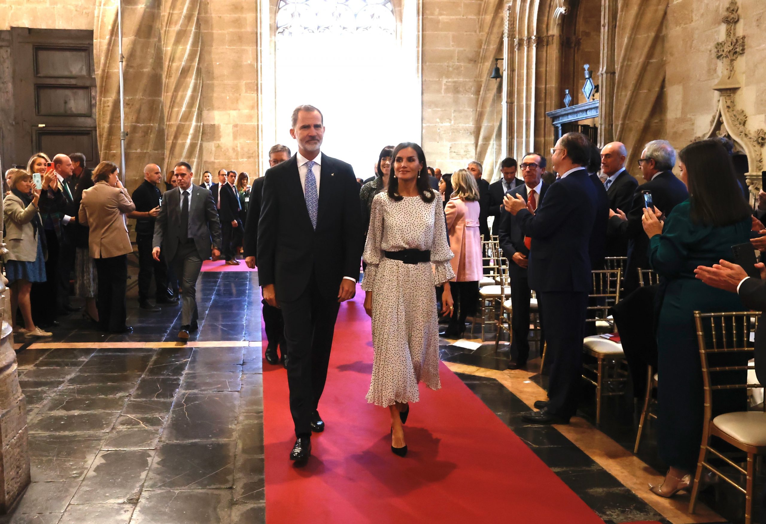 Felipe VI y Letizia a su entrada a la Lonja de los Mercaderes.