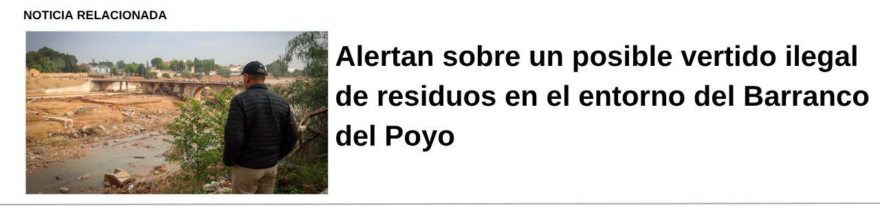 La Generalitat Valenciana ha formalizado dos denuncias ante la Fiscalía provincial de Valencia contra la Confederación Hidrográfica del Júcar (CHJ), tras detectar la presencia de vertidos de residuos y de más de 300 vehículos afectados por las riadas abandonados en el entorno del barranco del Poyo. Estos hechos pueden ser constitutivos de un delito de contaminación ambiental o de traslado de residuos tipificados en el Código Penal.