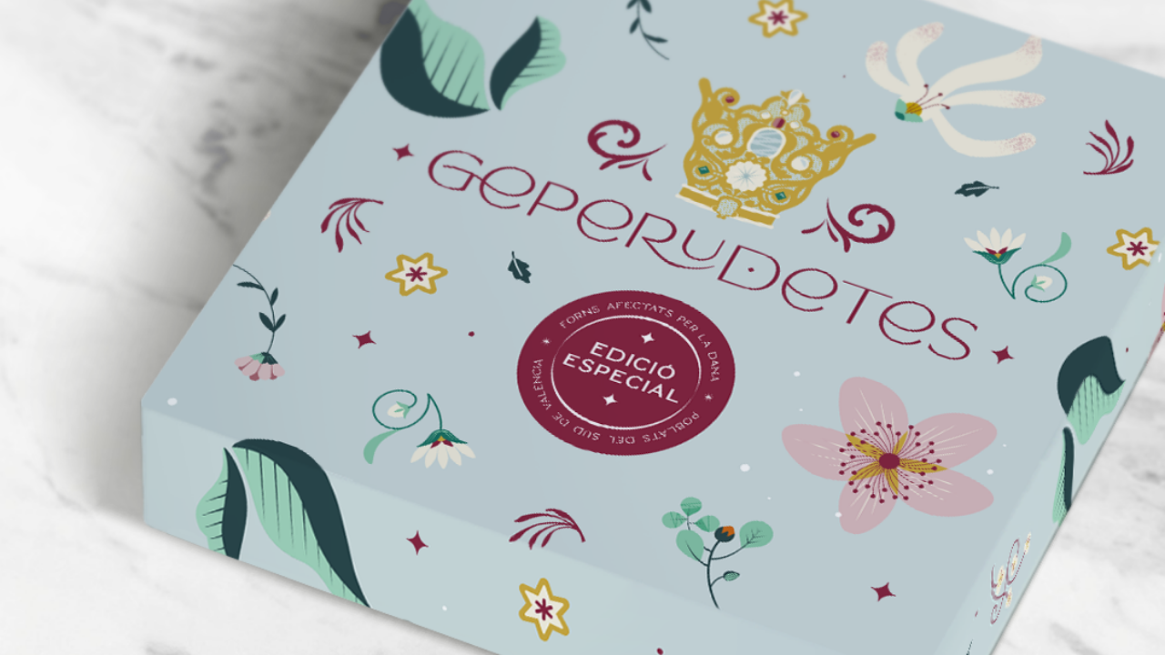 Una de las novedades de esta edición es la imagen que acompaña las cajas de Les Geperudetes, diseñada especialmente por una ilustradora valenciana afectada por la misma DANA que perjudicó a los hornos. Esta ilustración refuerza el carácter de la campaña, en la que tradición, gastronomía y solidaridad se dan la mano.