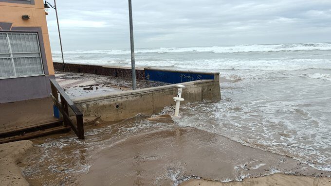 En las playas del sur de València —Pinedo, El Saler y el Perellonet— el agua superó la franja de arena y llegó a entrar en viviendas, especialmente en aquellas zonas sin paseo marítimo. Amplios tramos de playa como el Marenyet en Cullera, prácticamente desaparecieron y, en algunos puntos, el mar alcanzó la carretera.