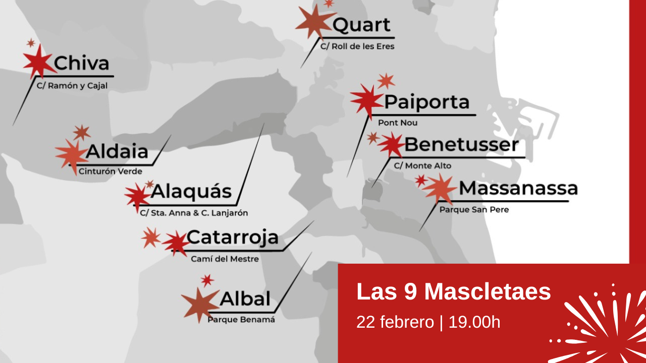 El próximo sábado 22 de febrero a las 19:00 horas, los cielos de L’Horta Sud serán el epicentro de un espectáculo pirotécnico inédito que reunirá a valencianos y visitantes en torno a una tradición que simboliza la unión y la solidaridad. Nueve municipios de la comarca dispararán de manera simultánea un total de 9 mascletaes, en una iniciativa que busca recuperar la sonrisa de los vecinos de una zona profundamente afectada por la DANA.