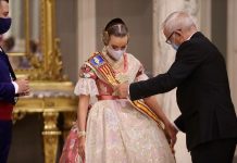 Carla García ha entrado al Ayuntamiento de Valencia acompañada por su Corte de Honor. Carlos Galiana ha realizado una breve introducción. A continuación el alcalde de Valencia, Joan Ribó, ha puesto las bandas a las representantes de la Corte de Honor y a Carla García, Fallera Mayor Infantil de Valencia 2021.