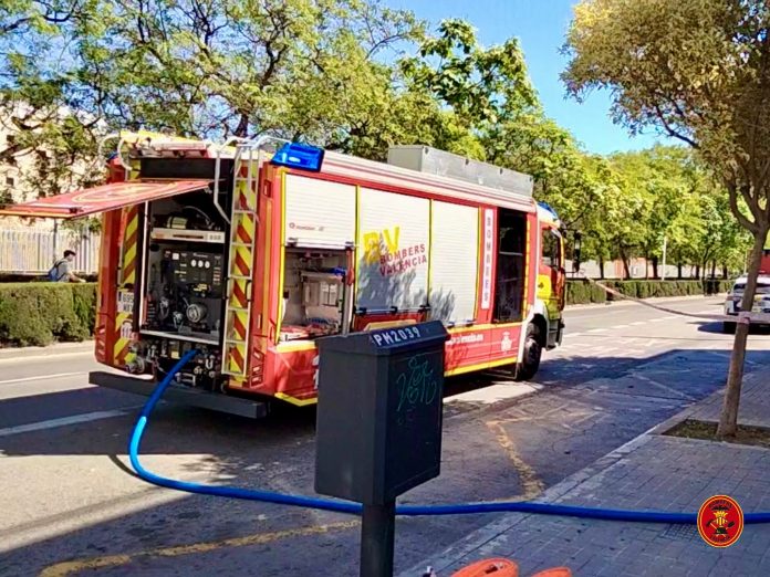 Los bomberos del Ayuntamiento de Valencia apagan un incendio en una biblioteca del campus de Tarongers. El fuego ha afectado al baño del segundo piso de la Biblioteca de Educación María Moliner, situada en el recinto universitario.