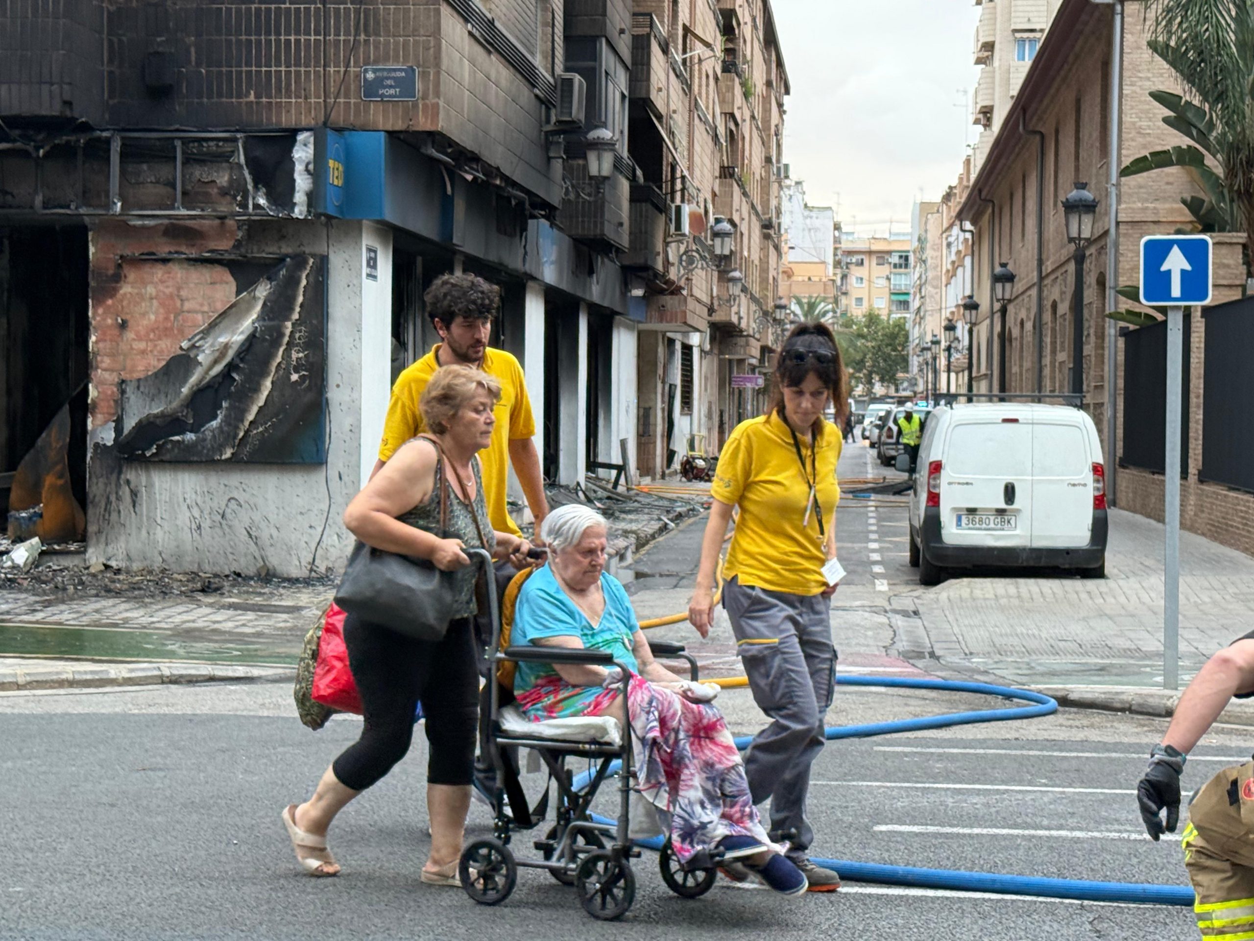 Un grupo de vecinos y empleados de la tienda TEDi afectados en el incendio de la Avenida del Puerto.