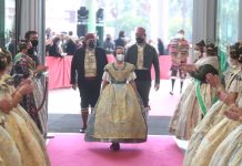 La niña Nerea López ha recibido de manos del alcalde de Valencia, Joan Ribó, la banda que le acredita como Fallera Mayor Infantil de Valencia 2022. Todos los falleros asistentes en el Palau de Congresos se han levantado para aplaudirla en su exaltación.