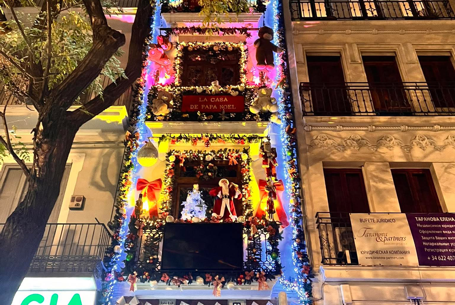 El centro de Valencia acoge una iluminación que llama la atención en la llamada «Casa de Papá Noel» en la plaza del Mercado número 38. Los viandantes de los alrededores de la Lonja y del Mercado Central se paran para ver esta curiosa iluminación y decoración.