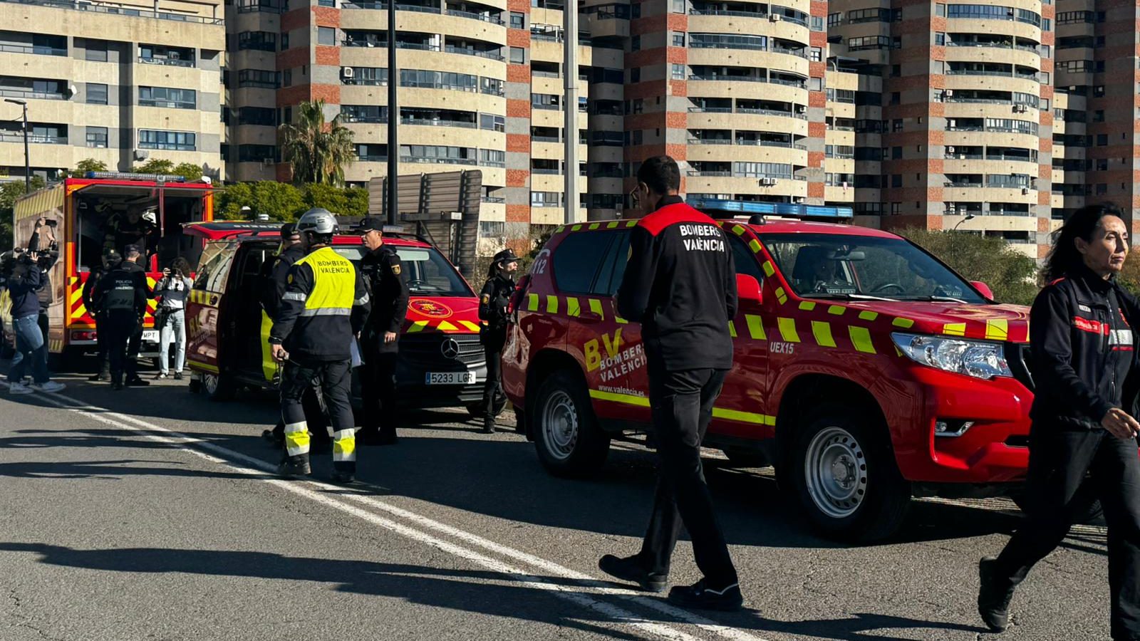Durante el simulacro, las calles de La Torre se han llenado de movimiento. Vehículos de Bomberos y Guardia Civil, así como Policía Local de València y de municipios próximos como Catarroja o Paiporta, han recorrido la zona, acompañados de patrullas que han emitido mensajes de megafonía para informar a los vecinos.