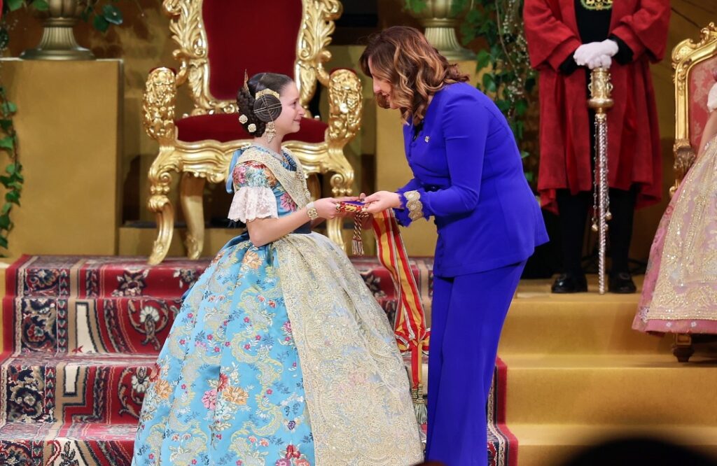 El momento más emotivo ha sido cuando Marta ha entrado en la sala Iturbi y ha sido recibida con un gran aplauso por los asistentes. Acompañada por la alcaldesa y recibida en el escenario por Santiago Ballester, presidente de Junta Central Fallera.