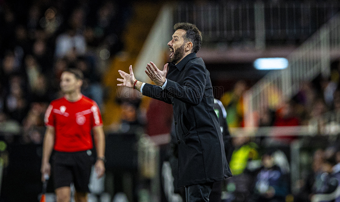 Seguidamente, el conjunto valencianista estuvo muy cerca de marcar el primer gol del partido en una jugada en la que centró Pepelu de falta y Foulquier rozó el balón con la cabeza, pero no logró encontrar la portería defendida por Dituro. Precisamente, el guardameta argentino cometió un error en la salida de balón que Rioja estuvo cerca de aprovechar.