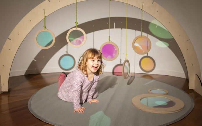 Los pequeños disfrutarán mientras gatean en la nueva colección de juguetes diseñada específicamente para el IVAM por Sara San Gregorio y Alicia Gutiérrez. Invita a explorar con luz, reflejos, volumen, texturas, rotaciones, posiciones, miradas o construcciones. Los objetos están dispuestos en el espacio para que la experimentación aparezca de forma natural y el encuentro suceda de manera espontánea.