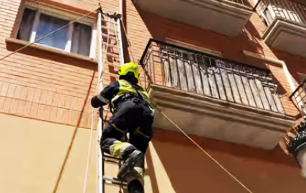 Los bomberos rescatan a un perro en un balcón expuesto al calor de Valencia. Los agentes intervienen para auxiliar al perro que permanecía bajo el sol en un balcón. Tras acceder a la vivienda, proceden a la apertura del ventanal, dejando al animal a resguardo en el interior.