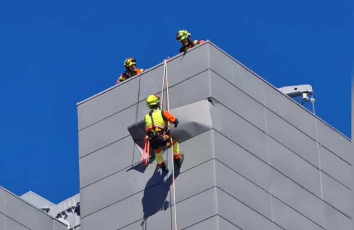 Otra acción ha sido la retirada de varias placas de plástico en el colegio Teodoro Llorente. Estos elementos estaban colgados en una de las fachadas, con riesgo inminente de caída al patio interior. Los agentes han eliminado el peligro antes de que pudiera afectar a alumnado y personal del centro, garantizando así la seguridad en el entorno escolar.