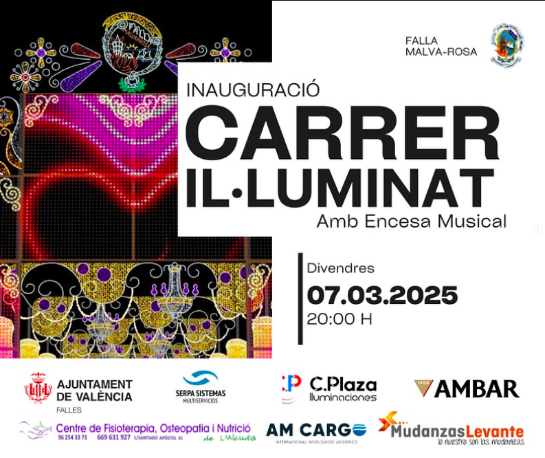 Esta comisión tiene previsto inaugurar este proyecto de iluminación el viernes 7 de marzo a las 20:00h. Hora correspondiente a la llegada del jurado según el itinerario de la programación de las Fallas 2025. La propia avenida será testigo de su participación en el concurso al igual que los centenares de visitantes que se acercarán a curiosear este proyecto de luz de y color.