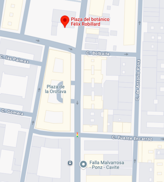 La avenida Malvarrosa destaca por su extensión justo al lateral de la costa. Esta comisión vuelve a «estrenar» ubicación tras la remodelación del emplazamiento en el que suelen plantar su falla. Desde el cruce de la calle Fuente Encarroz y la calle Fuerteventura hasta la plaza será la ubicación escogida para su montaje y espectáculos posteriores. La plaza del Botánico Félix Robillard se ha reformado por completo, añadiendo un suelo que se define como más «resistente al fuego» frente a la quema de esta falla.