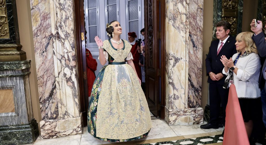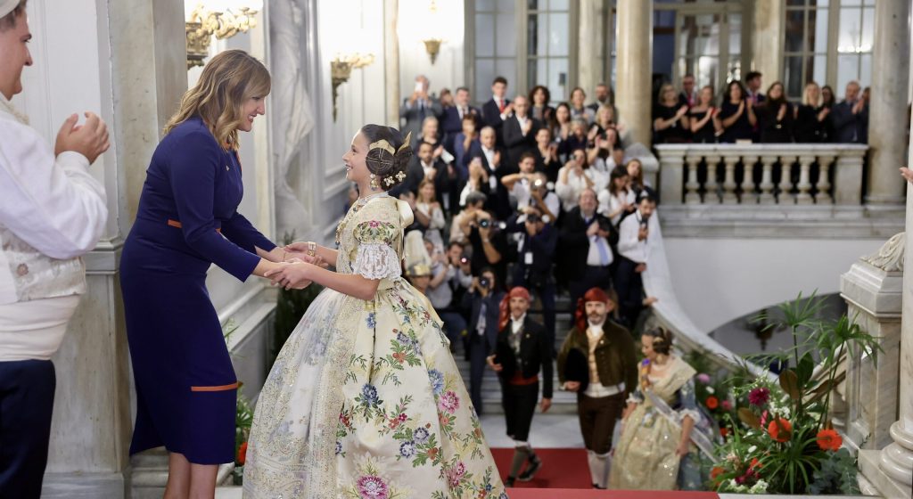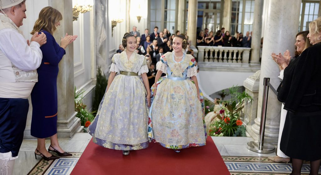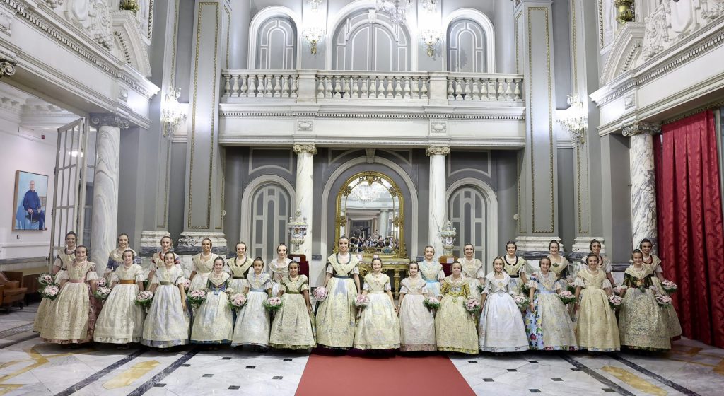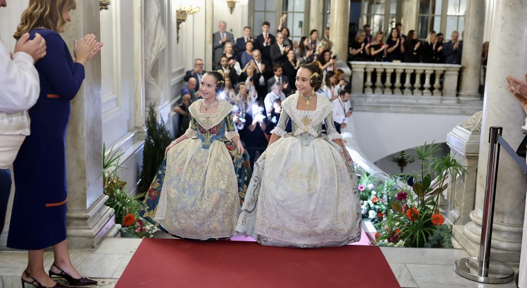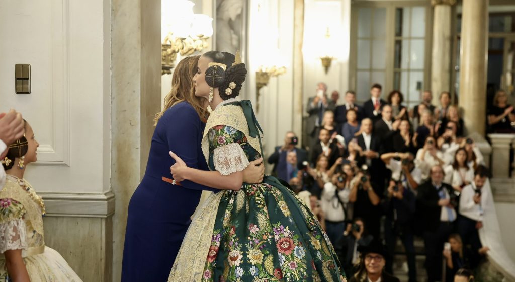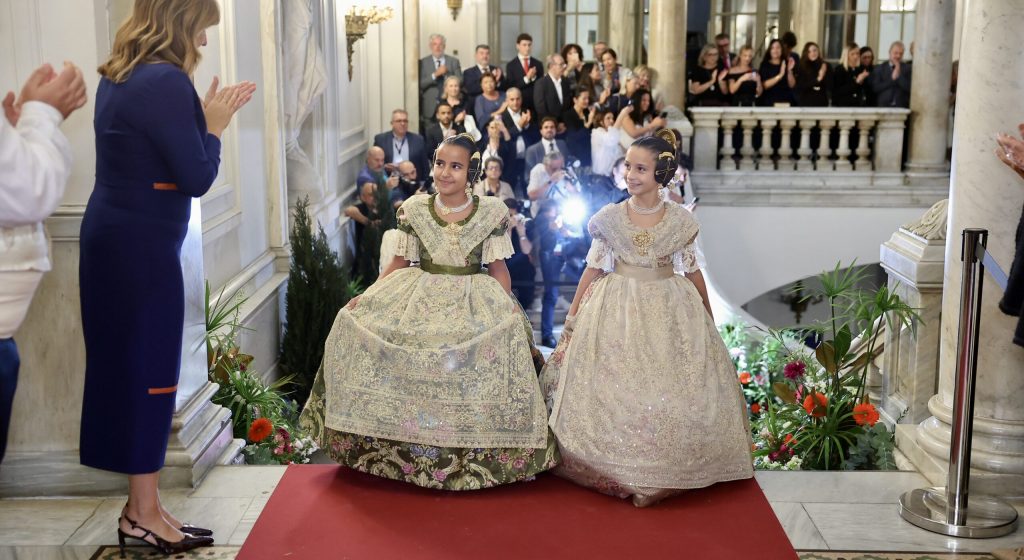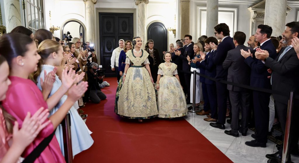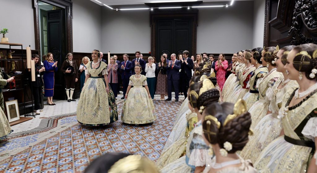 Después, en el Salón de Cristal, las nuevas Falleras Mayores recibieron los tradicionales ‘Alfabeguers’ de Xavier Claur, primer obsequio oficial del Ayuntamiento de València. Las fotografías oficiales junto a sus Cortes de Honor y las autoridades cerraron una jornada marcada por la emoción, la tradición y el amor por la fiesta.