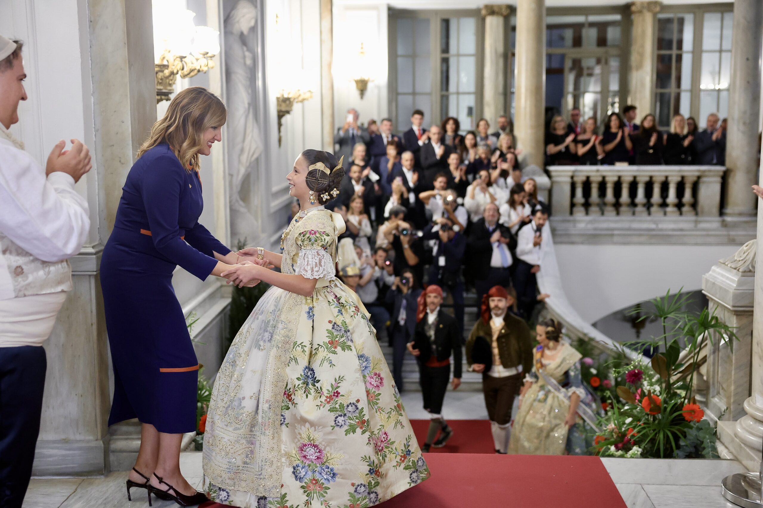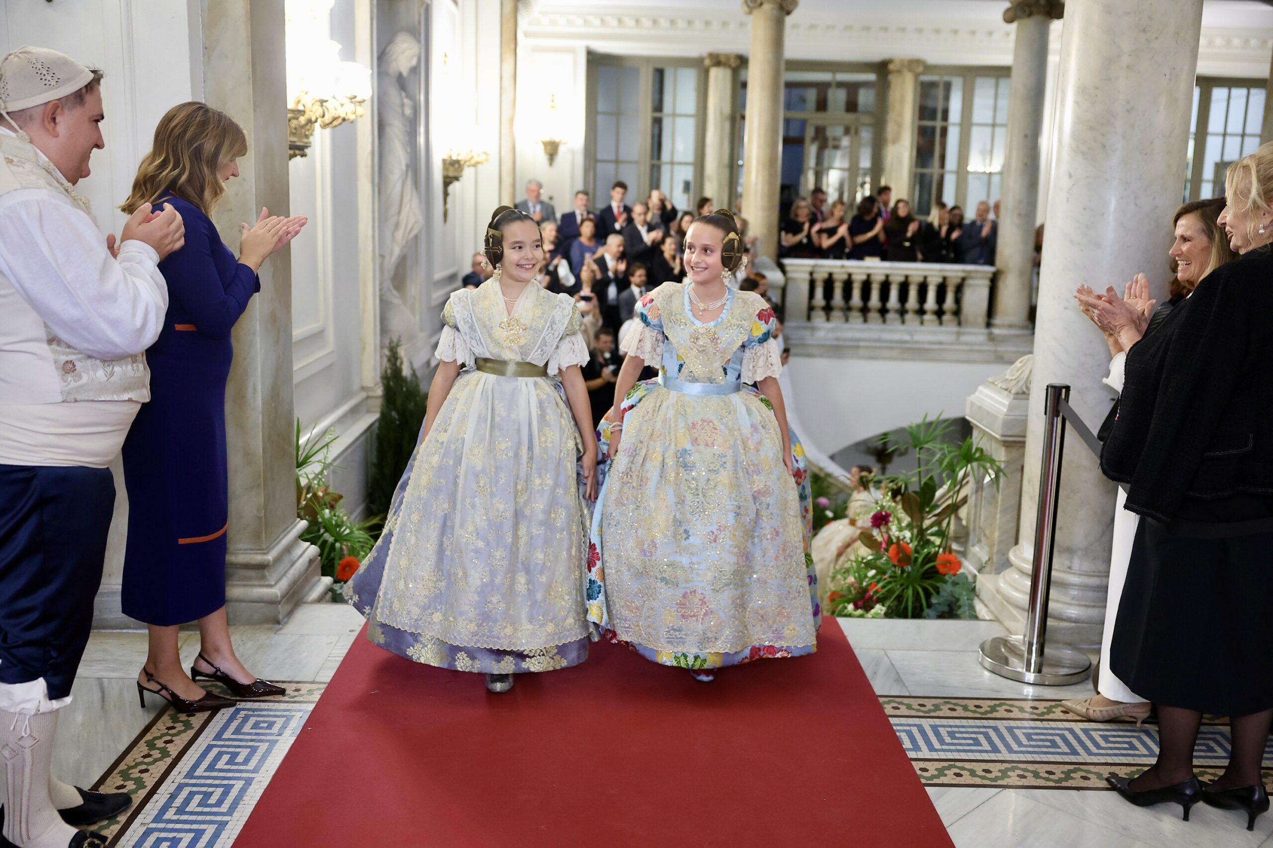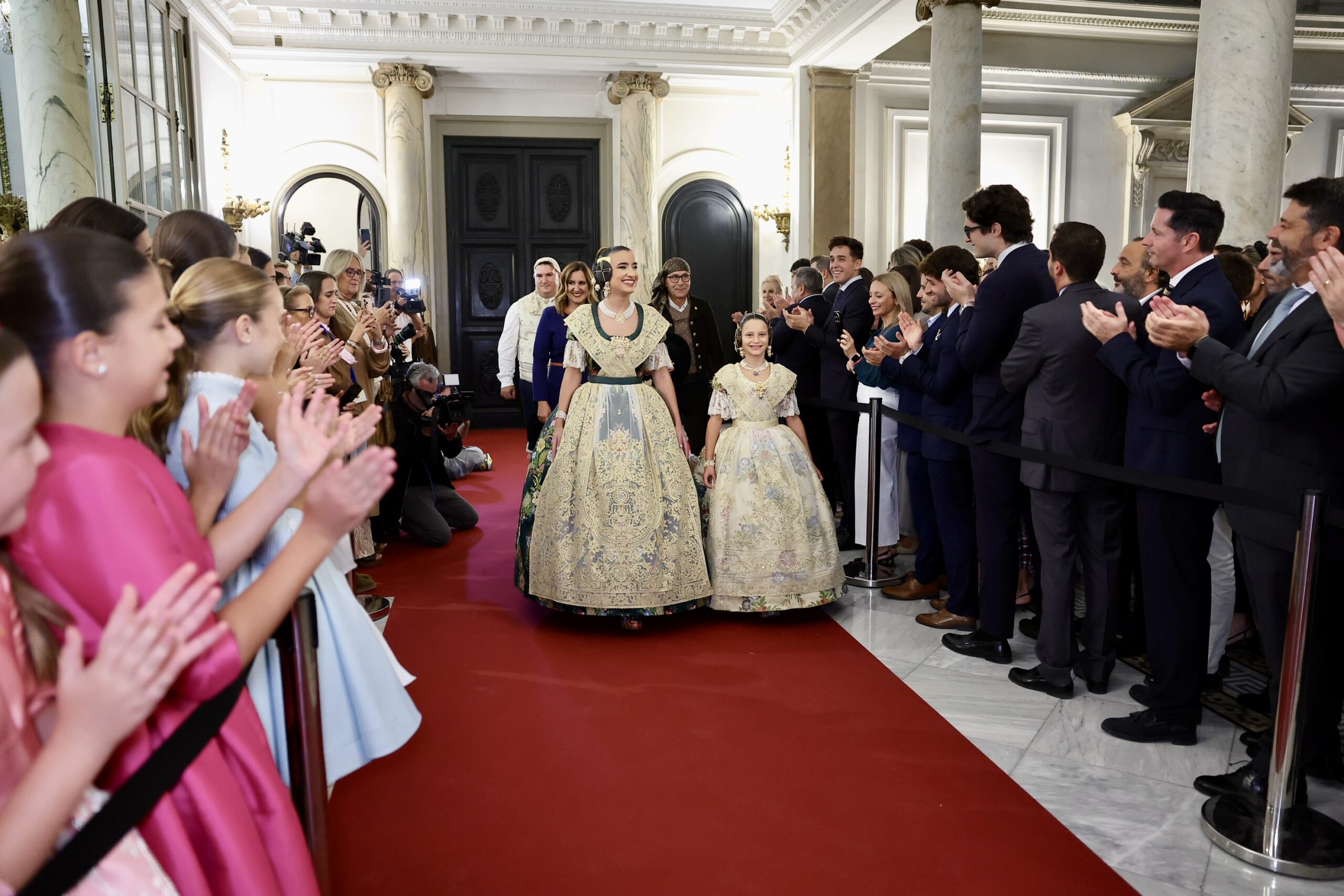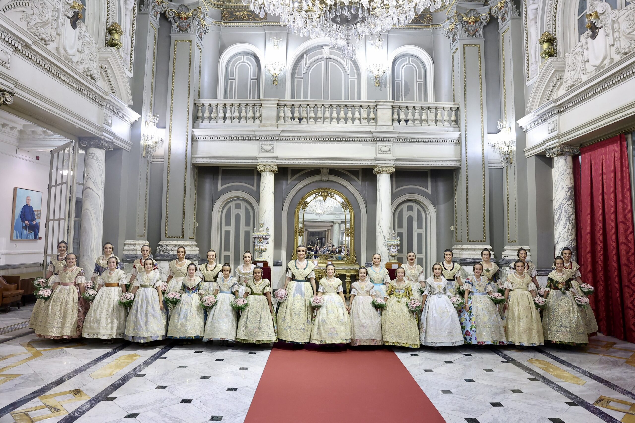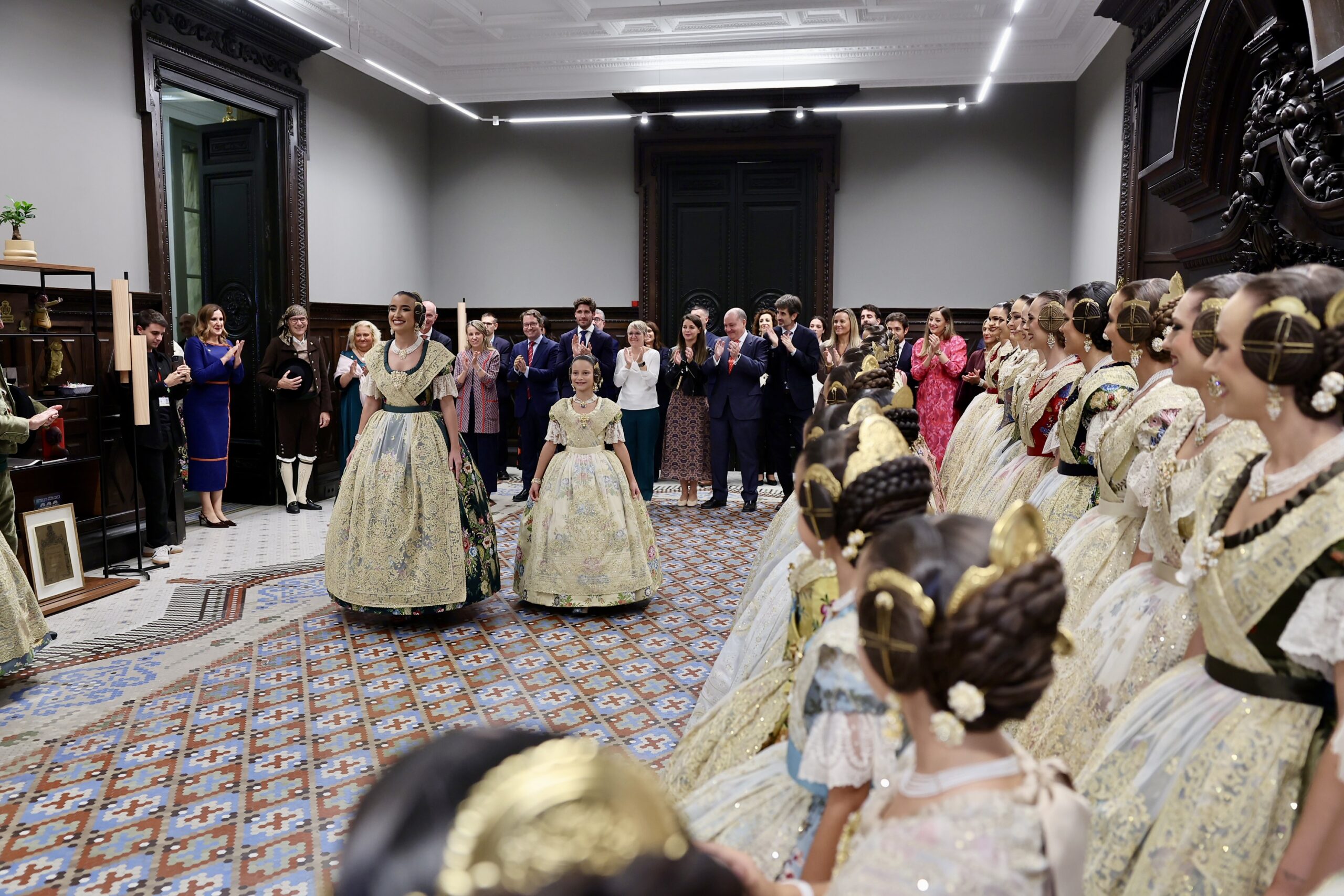 Después, en el Salón de Cristal, las nuevas Falleras Mayores recibieron los tradicionales ‘Alfabeguers’ de Xavier Claur, primer obsequio oficial del Ayuntamiento de València. Las fotografías oficiales junto a sus Cortes de Honor y las autoridades cerraron una jornada marcada por la emoción, la tradición y el amor por la fiesta.