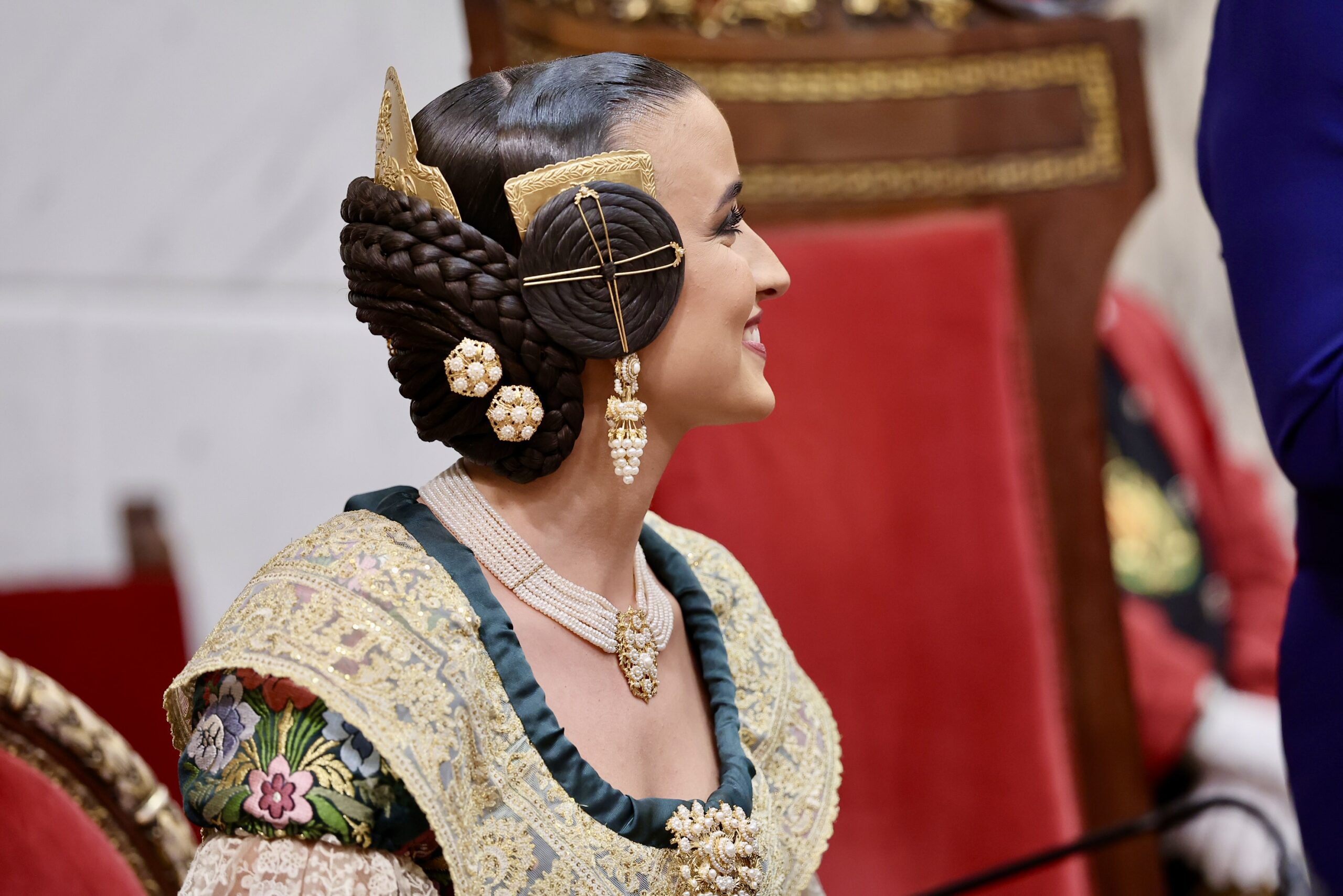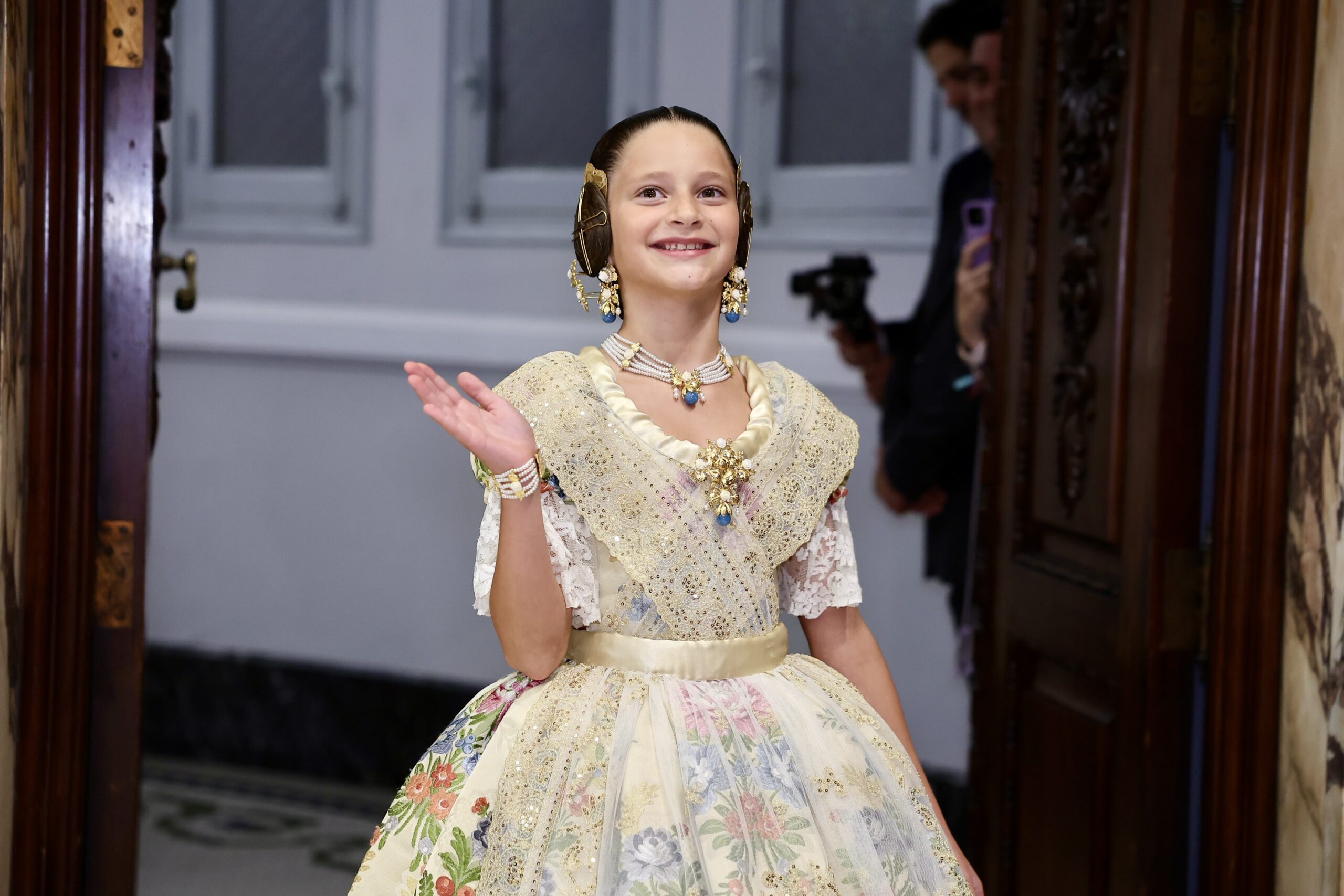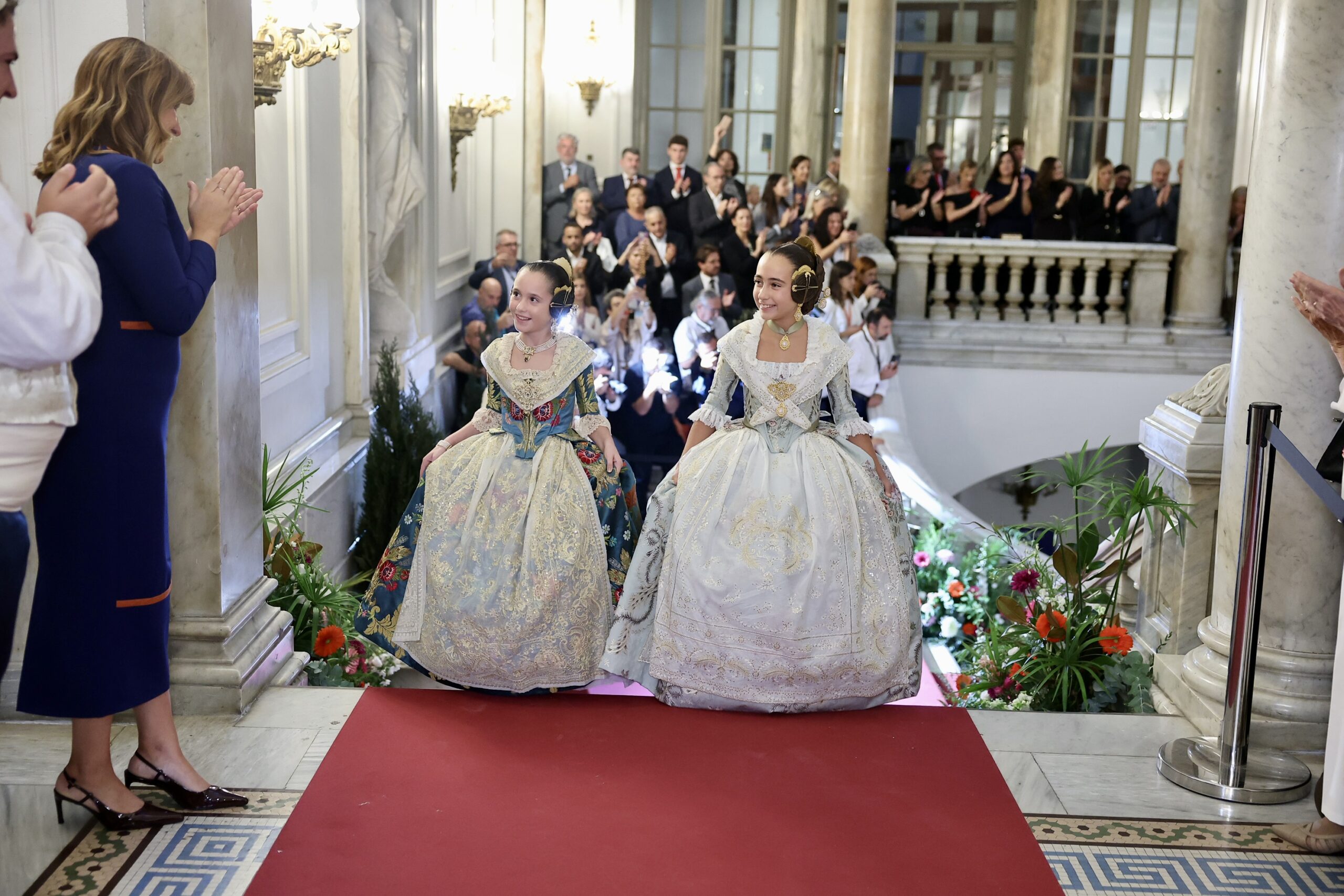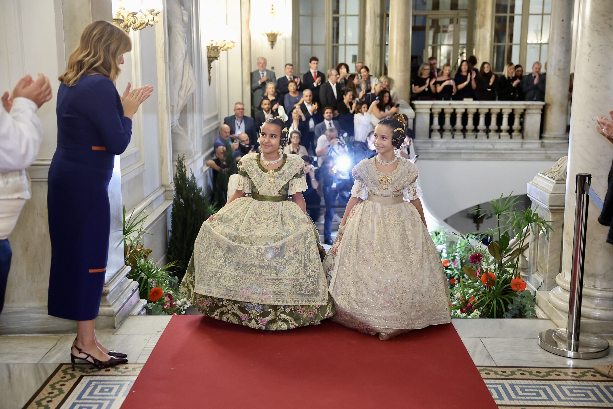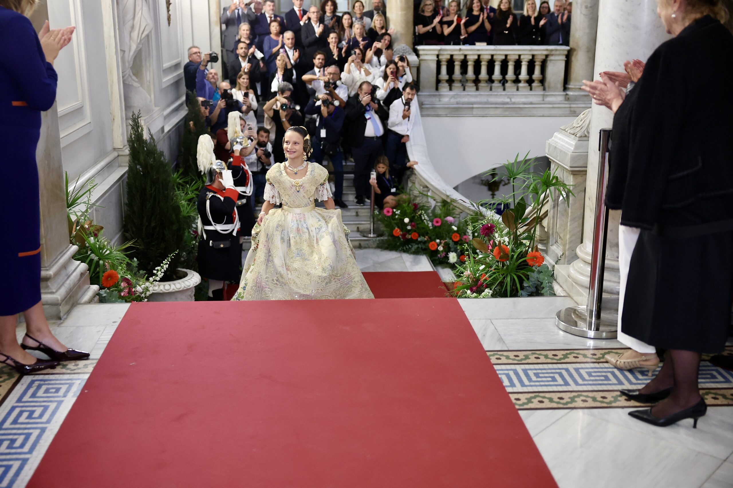 A las 19:00 horas, la alcaldesa de València, María José Catalá, junto al secretario general de Junta Central Fallera, Nico Garcés, y el concejal de Fallas y presidente de JCF, Santiago Ballester, recibieron a las protagonistas. Primero subieron las niñas de la Corte de Honor Infantil, radiantes de ilusión, seguidas por la Fallera Mayor Infantil, Marta Mercader, que ascendió sonriente, consciente de estar viviendo uno de los instantes más inolvidables de su vida.