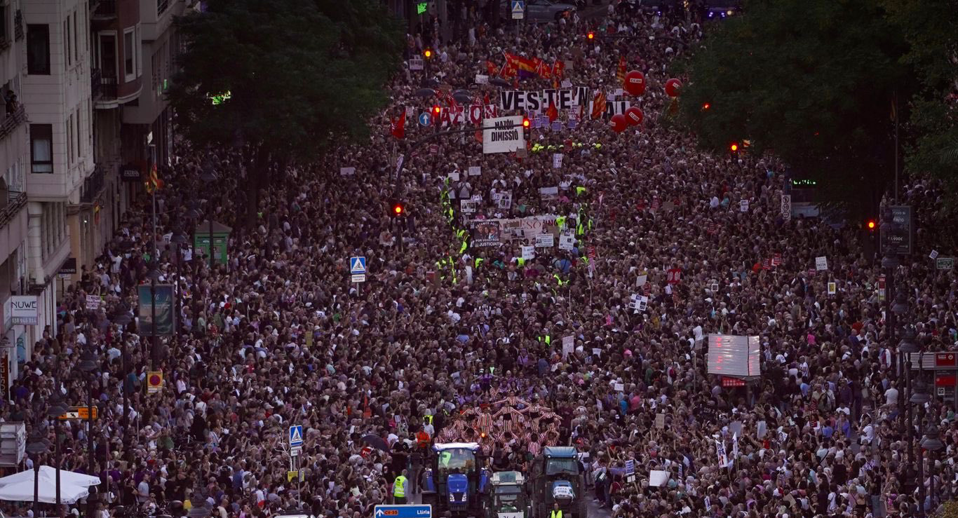 La protesta ha empezado en la plaza San Agustín, ha recorrido la calle Colón y está previsto que finalice en la plaza de la Virgen. Algunos manifestantes llevan fotos de familiares fallecidos con frases como: «Justicia» o «Estamos aquí por vosotros». También hay carteles que dicen: «La vostra incompetència acaba amb les nostres vides» o «Mazón vas a llorar lágrimas de barro».