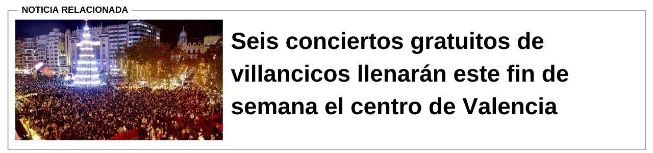 Hasta el próximo 4 de enero se ofrecerá una cincuentena de conciertos en plazas y barrios de València, en el marco de la estrategia València Music City, organizados por la Fundación Visit València. Son actuaciones navideñas que combinan coros, villancicos y folclore tradicional: la mitad de ellos, en la plaza del Patriarca, con actuaciones diarias en pleno corazón del centro histórico. Y la otra mitad, en los barrios y pedanías (Marxalenes, Castellar-Oliveral, el Palmar, Benifaraig, Massarrojos, Patraix, Quatre Carreres, San Isidro, Benicalap, Jesús, Tres Forques, Cabanyal, Tendetes, Benimaclet, Sant Marcel·lí, Orriols, Benimàmet, el Grau, Pinedo, Nazaret, la Torre, Torrefiel, la Fonteta y la Malva-rosa).