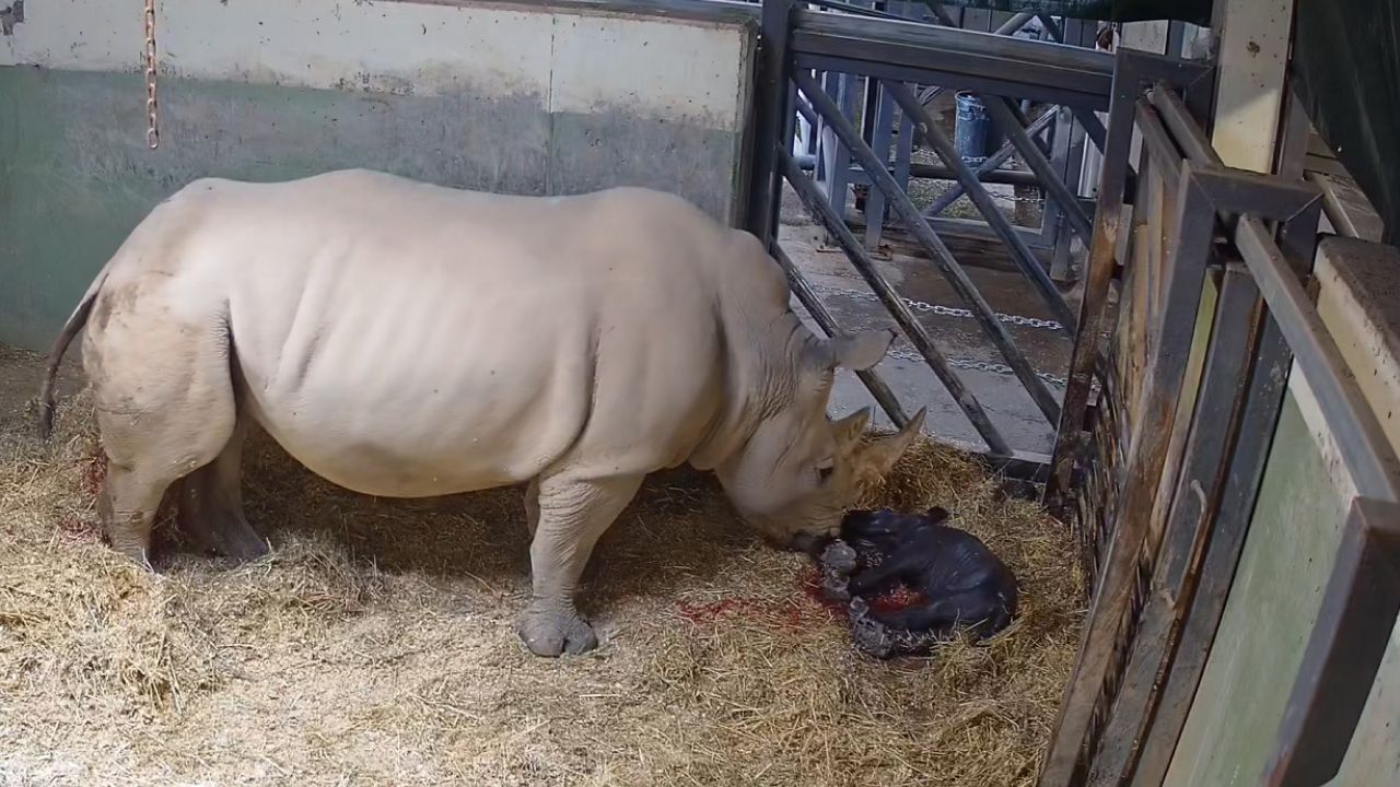 Tanto el parto como las primeras horas se están desarrollando con normalidad, la madre le presta todas las atenciones y el “bebé rinoceronte” se muestra vivaz, levantándose a los pocos minutos tras nacer y moviéndose, siguiendo su instinto, en busca del refugio y calor materno.