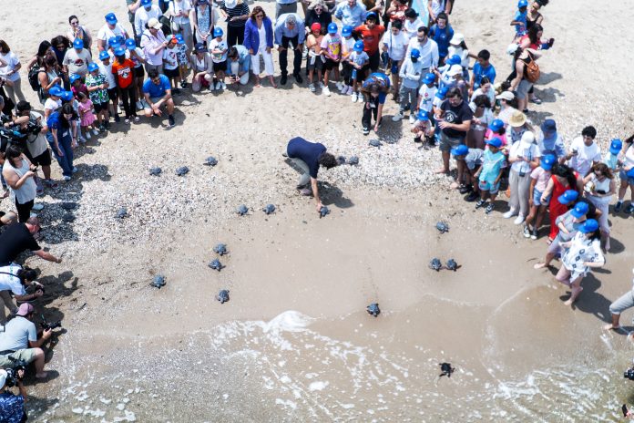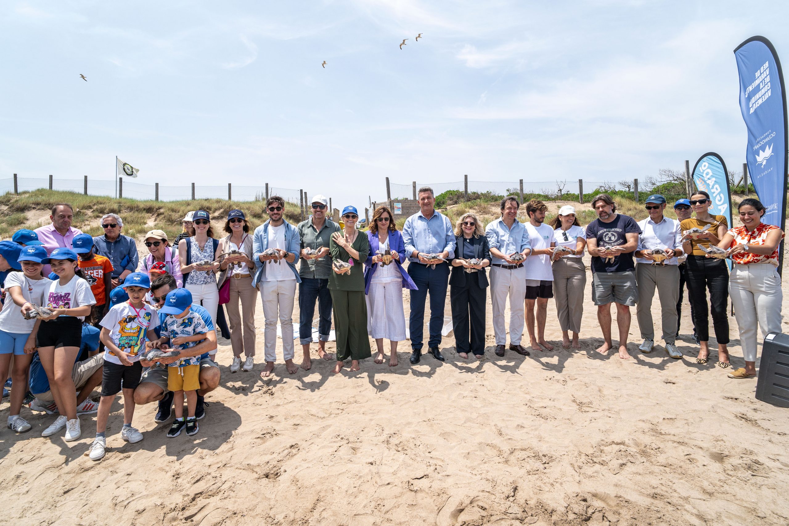 Cada uno de los asistentes ha contribuido simbólicamente a la suelta de una tortuga al mar, entre ellos seis ejemplares puestos en manos de los niños y niñas participantes, reforzando el componente educativo del acto.