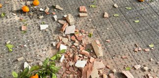 Los bomberos tiene que actuar ante los desprendimientos de una fachada...