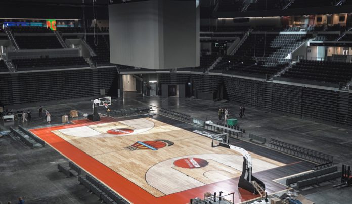 El Roig Arena monta su pista en ‘modo basket’. El nuevo recinto multiusos de Valencia impulsado por Juan Roig, ha realizado hoy por primera vez el montaje de su pista en modo baloncesto. Sobre ella jugarán sus partidos los primeros equipos femenino y masculino del Valencia Basket. El primer partido oficial del club tendrá lugar el viernes 3 de octubre, con la visita de la Virtus Bologna italiana en Euroliga masculina.