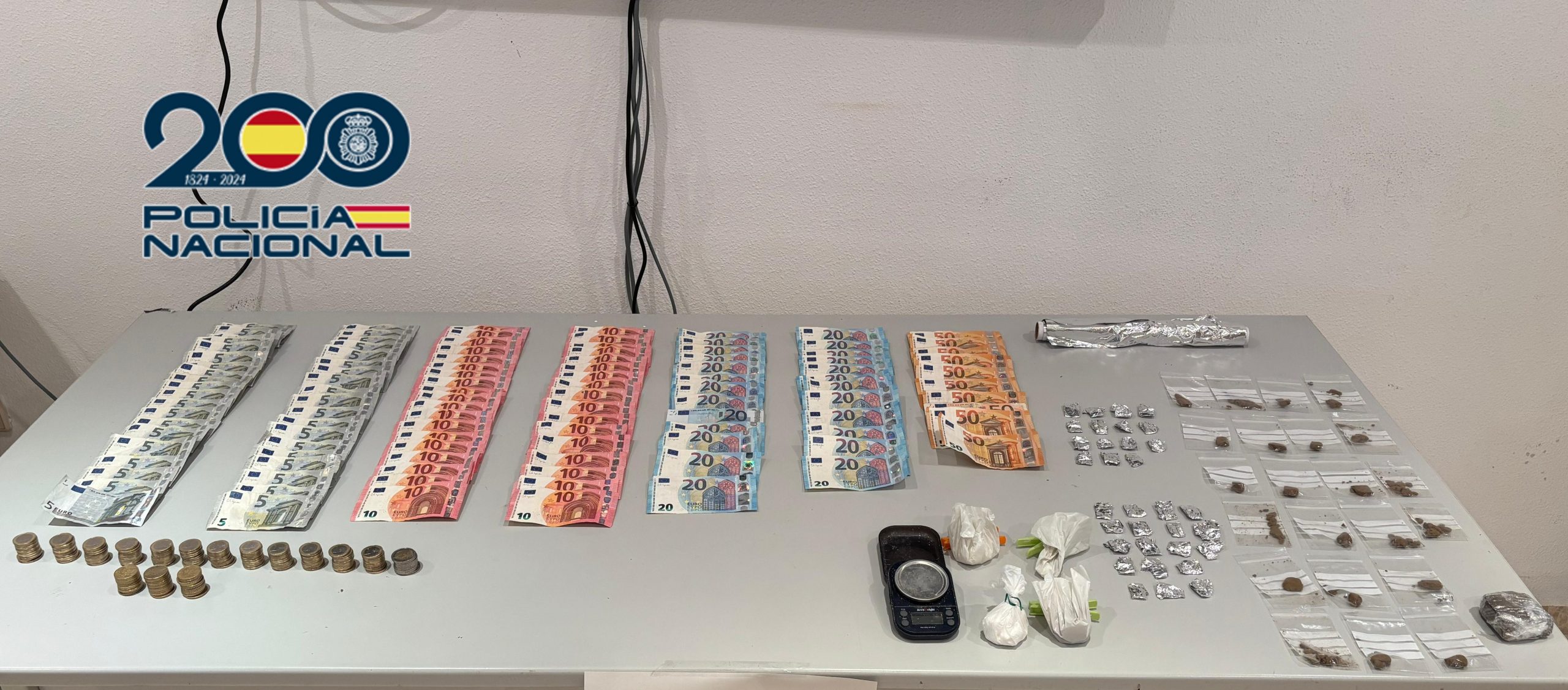 Ante tales hechos, los agentes efectuaron un registro en el domicilio investigado donde detuvieron a dos personas e incautaron cerca de 40 gramos de cocaína, otros 40 de cogollos de marihuana, más de un gramo y medio de heroína, 2.500 euros en efectivo y tres básculas de precisión.