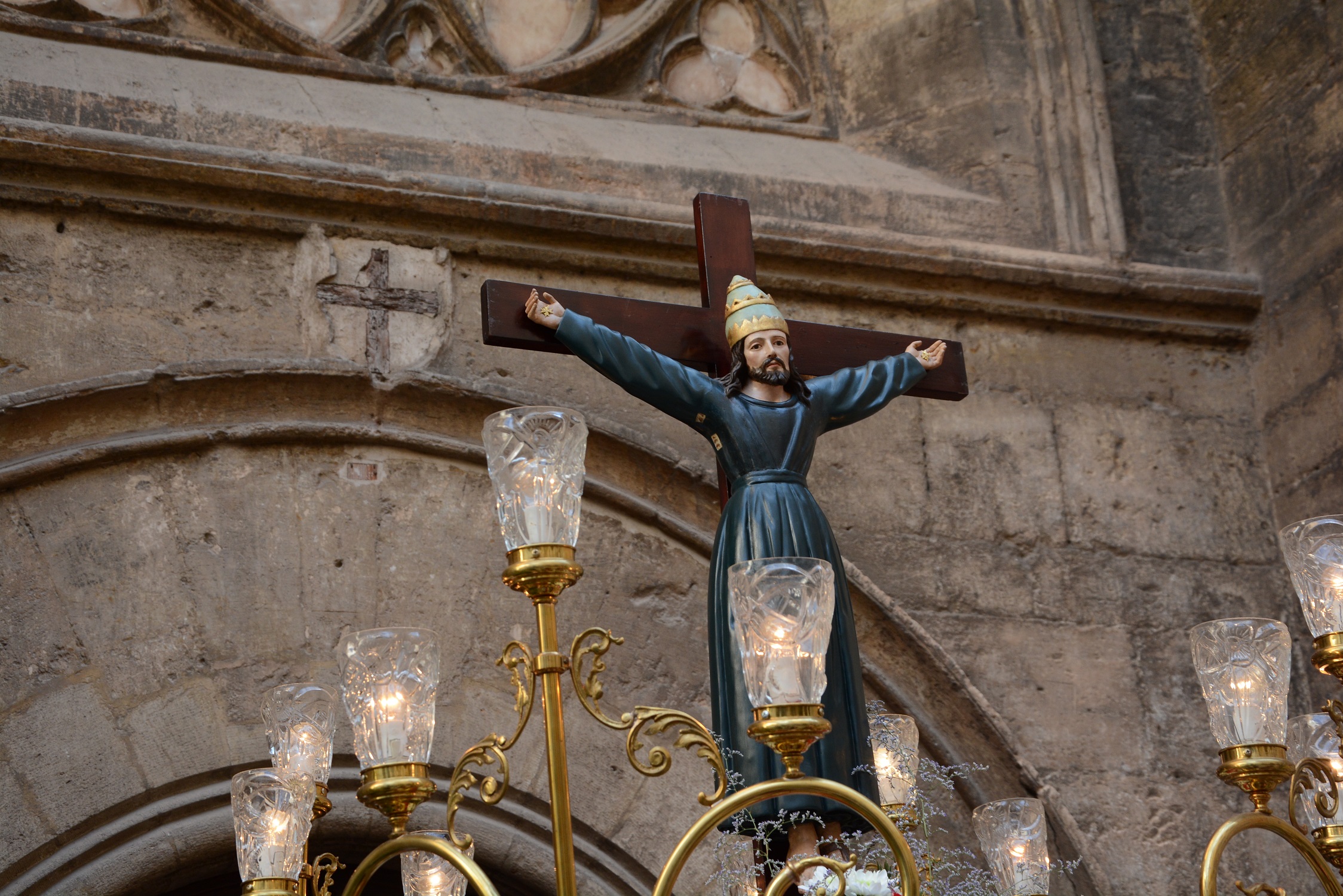 La figura central es un Cristo románico conocido como Sant Bult. Un icono de reducido tamaño que representa a Cristo en majestad y que, según la tradición, fue hallado tras la conquista de la ciudad. La palabra Bult, de hecho, proviene del latín vultus, que significa rostro o imagen. Este término se vincula directamente con la representación sagrada de Jesucristo. El hallazgo de esta imagen en La Xerea marcó el inicio de una devoción vecinal que ha persistido ininterrumpidamente durante más de siete siglos. Manuel Navarro, un albañil que era vecino del barrio, es figura clave en este relato. Fue quien entregó el Cristo a los convivientes de la Xerea. Este impulsó el compromiso vecinal de honrarlo anualmente con una festividad religiosa.