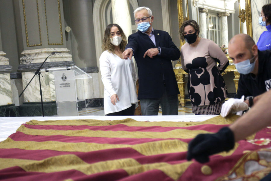 Séptima vez que la Real Senyera no recorrió las calles de València no fue por la lluvia, sino por la pandemia de la Covid-19 en 2020, cuando se mantuvo expuesta para las visitas ciudadanas.