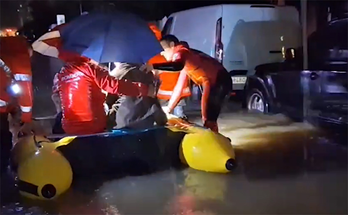 Vídeo d’una actuació per pluges a Carcaixent, on dos persones de 90 anys, amb problemes de mobilitat, han sigut rescatades a sa casa pels bombers d’Alzira i GERA en embarcació del Consorci. Han sigut evacuats des de sa casa, una planta baixa, fins a lloc segur. pic.twitter.com/3uF4dJApTN