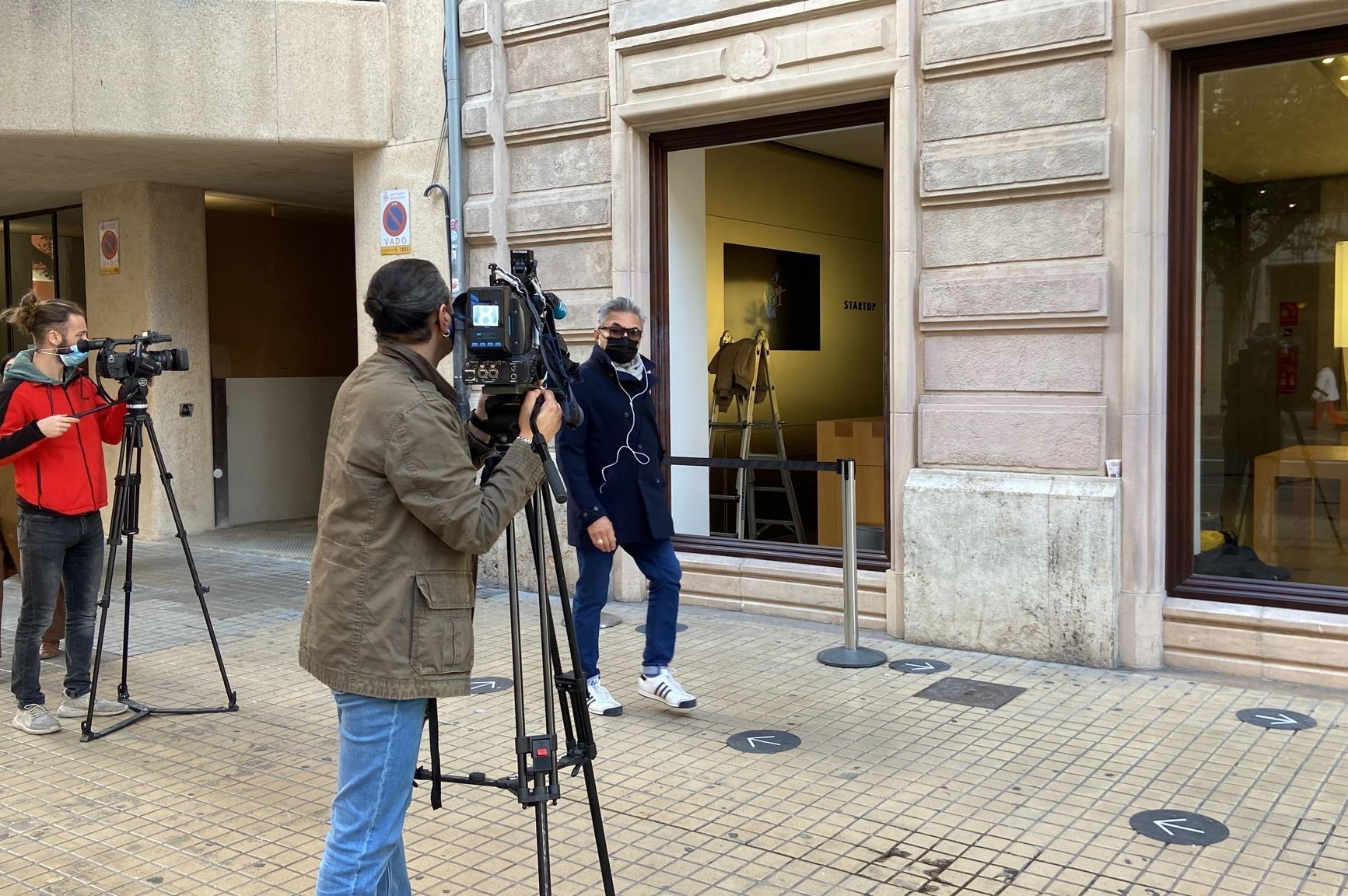 Diversos transeúntes pasean frente a la fachada principal de Apple Valencia. / MANUEL SEGUÍN