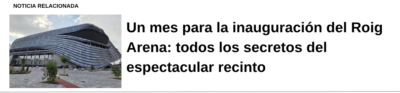 El Roig Arena será el futuro gran recinto cubierto multiusos de la ciudad de Valencia, donde se celebrarán eventos deportivos, de entretenimiento y corporativos. El proyecto cuenta con un presupuesto de más de 300 millones de euros sufragados íntegramente por Juan Roig, presidente de Mercadona, con su patrimonio personal. El Roig Arena, que comenzará a operar en septiembre de 2025, tendrá una capacidad máxima estimada de 20.000 espectadores en modo concierto.