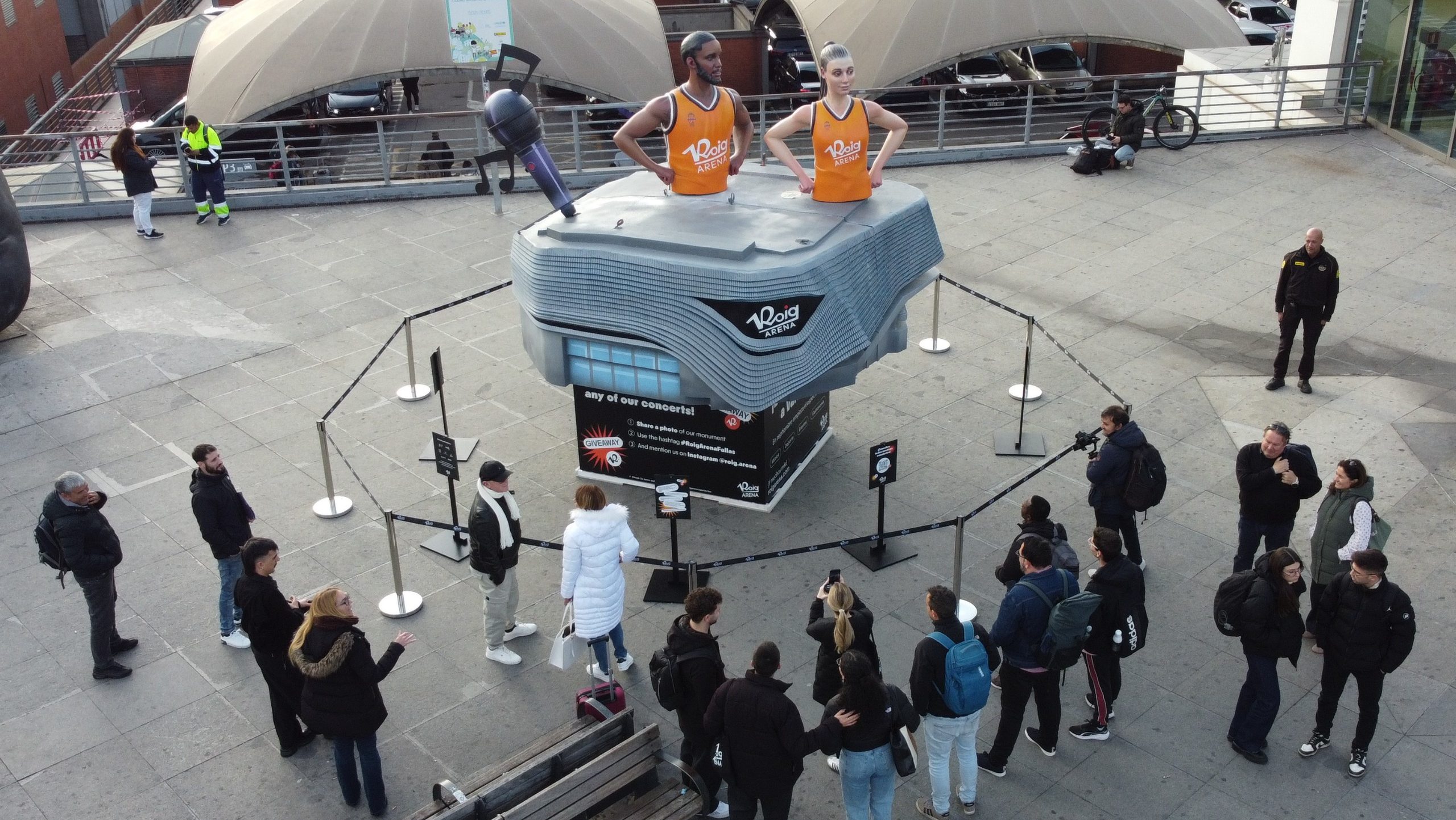 Destacan las figuras que representan a dos de los jugadores más reconocidos de los primeros equipos masculino y femenino del Valencia Basket: Raquel Carrera y Jean Montero. El Roig Arena, además de acoger eventos deportivos, musicales, de espectáculos y corporativos, será la casa del Valencia Basket Club.