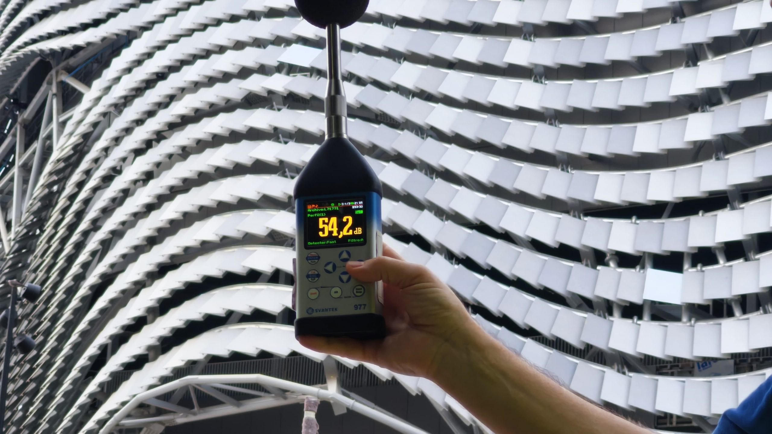 Durante los ensayos, se han simulado conciertos con música a 104 decibelios, el máximo permitido, en el interior del complejo. Sin embargo, desde el exterior, apenas se percibe ruido alguno. El bullicio del tráfico o las conversaciones de los viandantes superan en volumen a las melodías que resuenan dentro del recinto, incluso cuando el ensayo coincide en ambas salas del espacio: la arena principal y el auditorio secundario.
