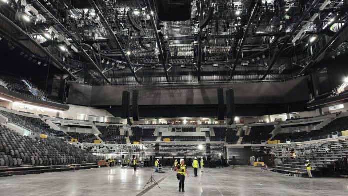 Más de 1.000 trabajadores ultiman los detalles del recinto, que contará con una pantalla gigante de 76 metros de largo, un marcador central de 12 metros con modo espejo y gradas retráctiles adaptables según el evento.
