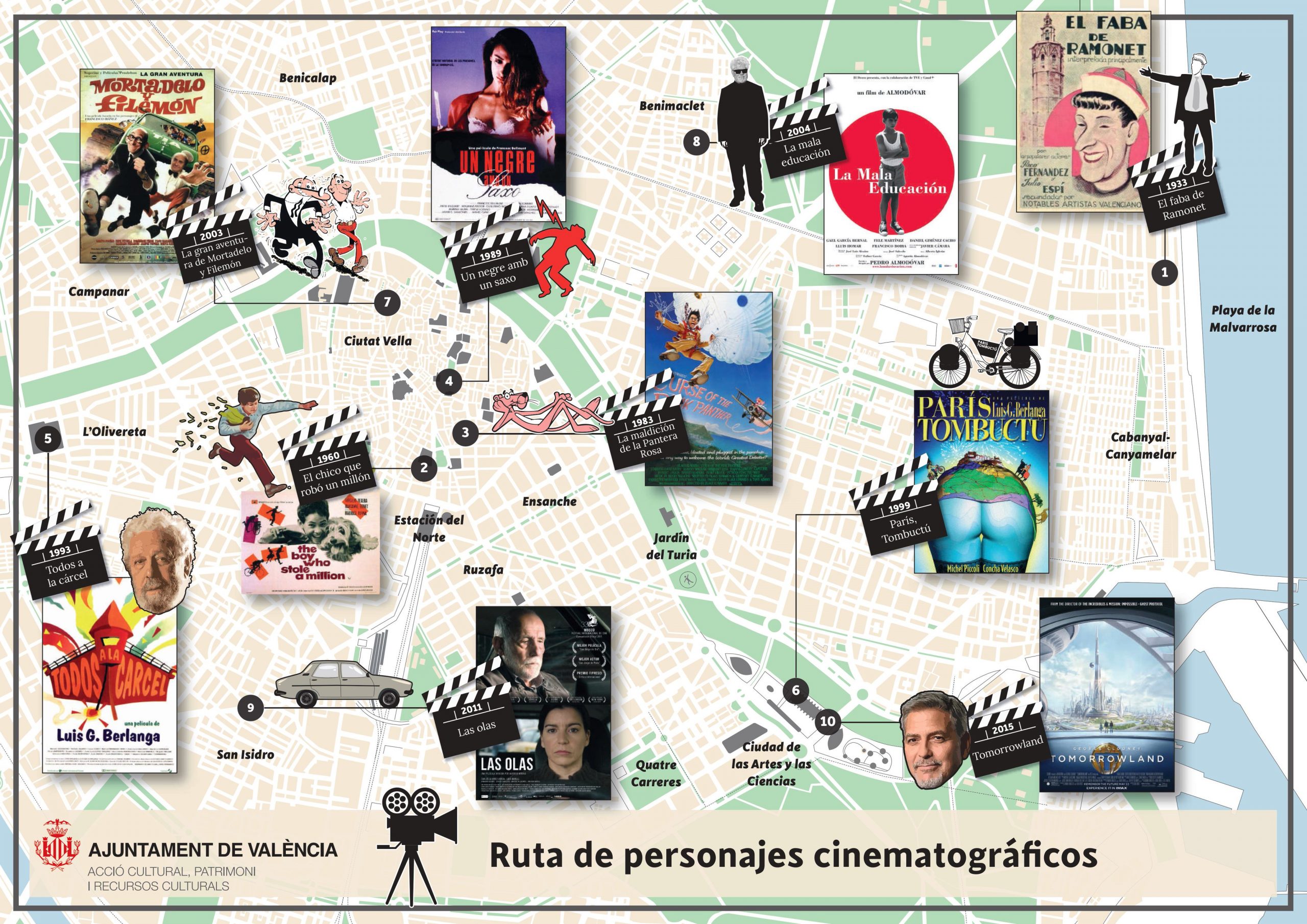 Sin olvidarnos de «La mala educación» que muestra calles de Benimaclet y de la Avenida del Reino de Valencia. El clásico «Todos a la cárcel» de Berlanga en el barrio de Olivereta, en la Antigua Carcel Modelo. «Las olas» se grabó en el distrito de San Isidro y el Faba de Ramonet en la playa de la Malvarrosa.